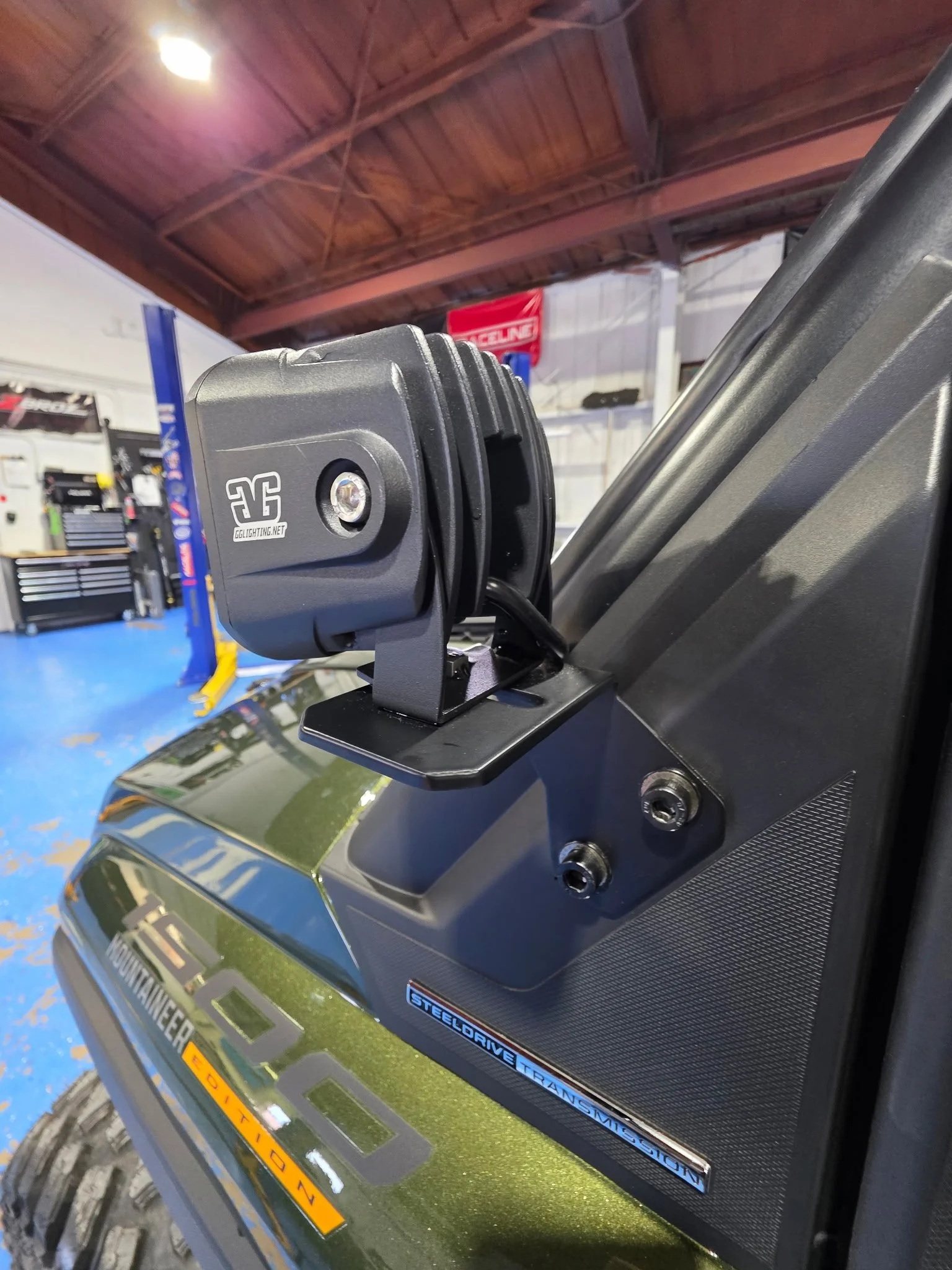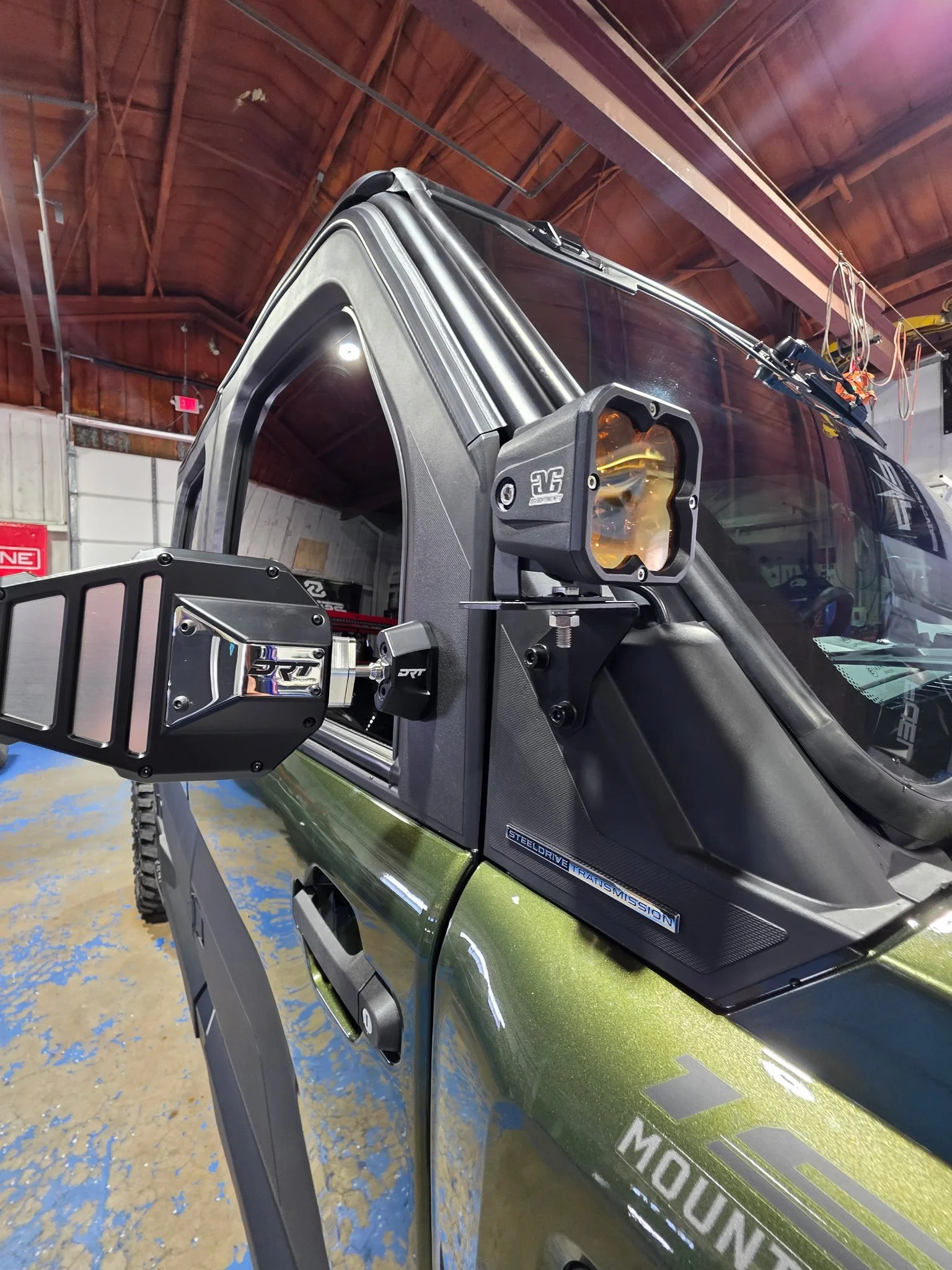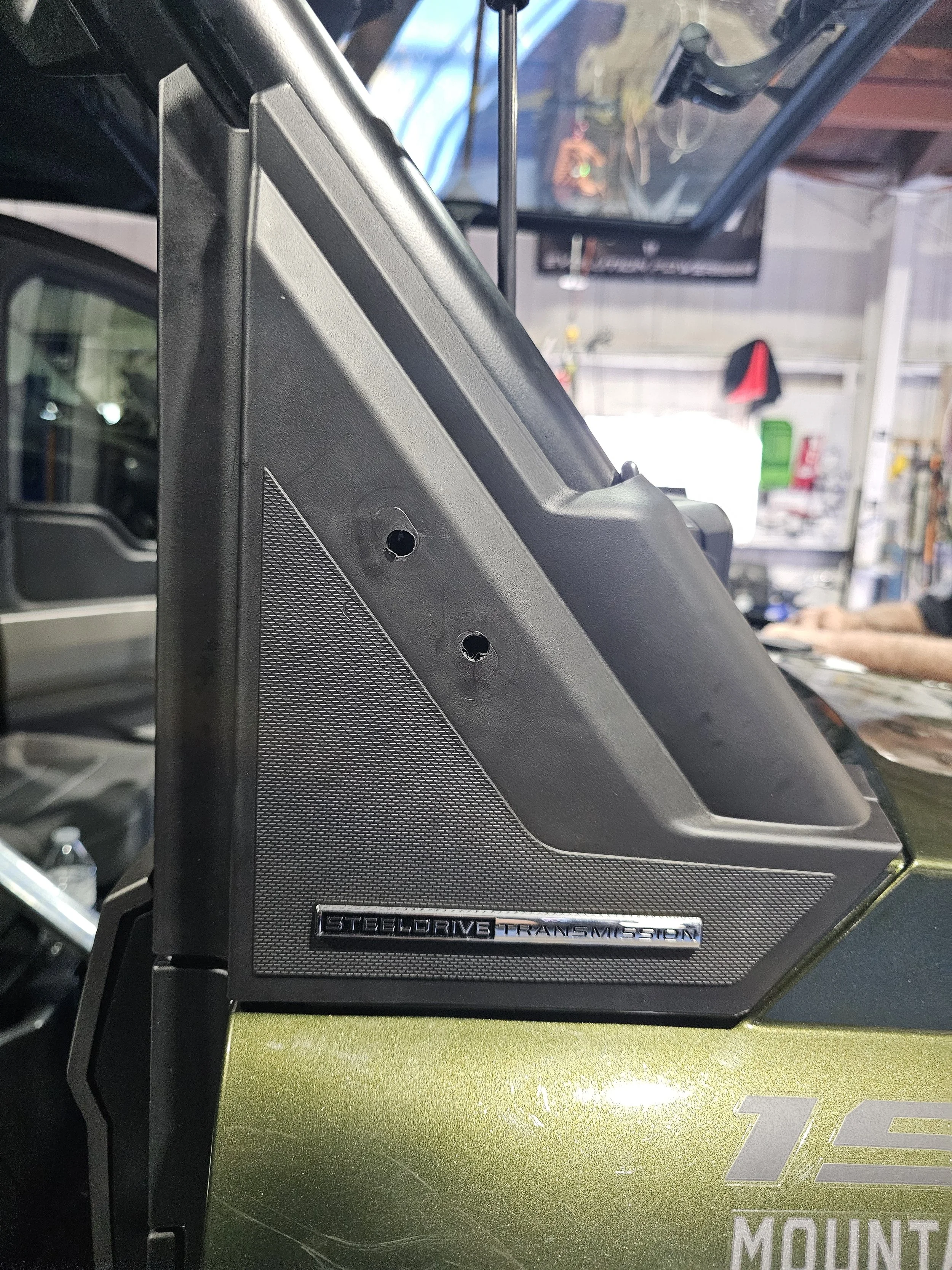 These mounting brackets bolt in using the existing frame bungs, just drill out the plastic dimples in your trim piece and go!